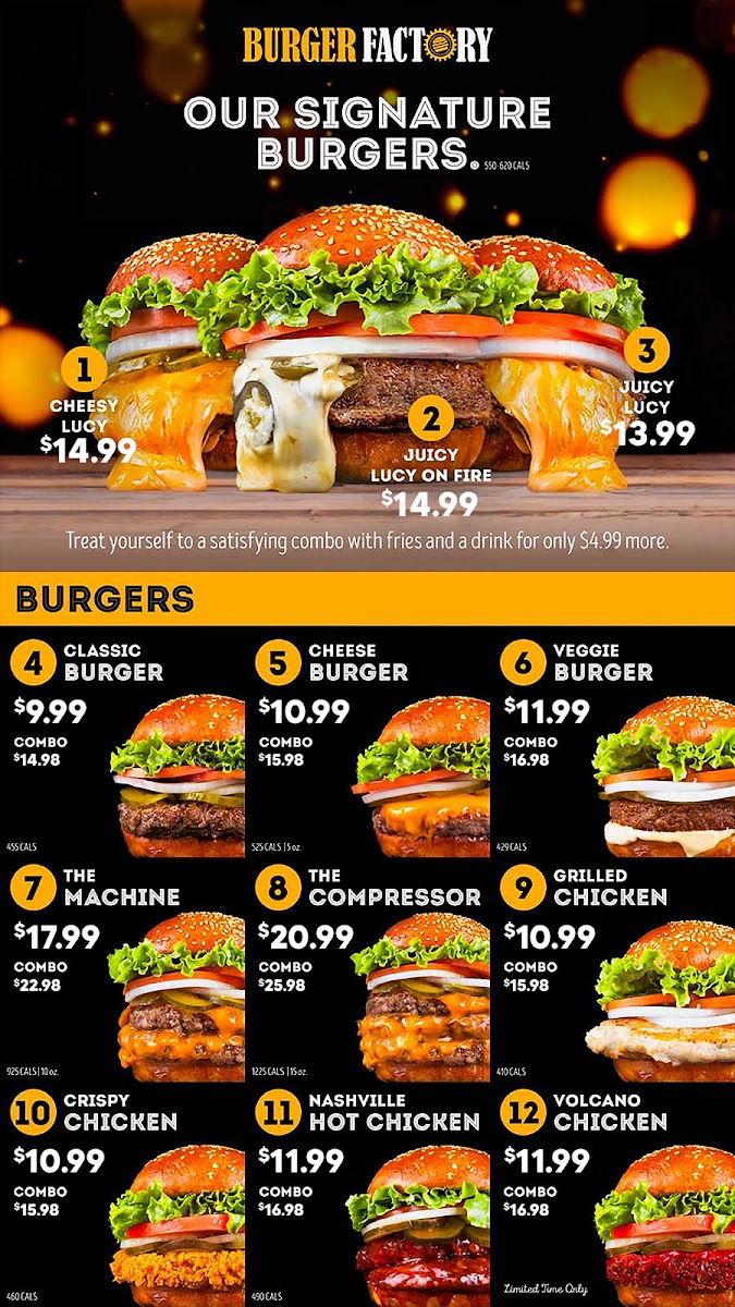 Burger factory is my go to burger place in Mississauga. Their Juicy Lucy burger is just mouth watering. Also if you like some spicy mix, try out thr Jalapeno poppers. One of the very few places where the deserts are also quite amazing. Try their funnel cakes!